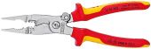 13 96 200 Електромонтажні кліщі 6 функцій в одних кліщах. Багатофункціональні кліщі для електромонтажних робіт; для захоплення плоского та круглого матеріалу, згинання, видалення задирок, різання кабелю, видалення ізоляції та опресування контактних гільз. гладкі губки для захоплення окремих жил без їх ушкодження; профільовані губки та виїмка для захоплення плоского та круглого матеріалу. спеціальна зовнішня кромка на губці для обробки штепсельних розеток для прихованої проводки та видалення задирок на отворах для введення кабелю. видалення ізоляції з проводів 0,75 – 1,5 мм² та 2,5 мм². опресувальне гніздо для контактних гільз 0,5 – 2,5 мм². ножиці з прецизійними лезами (індуктивного гарту) для різання мідного та алюмінієвого кабелю до 5 x 2,5 мм² / Ø 15 мм. Вузька конструкція робочої частини полегшує доступ до деталей. гвинтовий шарнір: точний хід без люфту. у моделях з розтискаючою пружиною закриття клямки призводить до змикання лез, але не блокує інші функції. завдяки раціональному механізму утримання зручно захоплювати деталі, не відкриваючи кліщі. Ріжучі кромки залишаються зімкнутими і захищеними. Параметри режиму різання: мідний кабель, багатопровідний: Ø 15 mm Параметри режиму різання: мідний кабель, багатопровідний: 50 мм ² Діаметр для окремих жил: 0,75 - 1,5 мм ² / 2,5 мм ² Параметри кв.мм: 0,5 - 2,5 мм² AWG: 1/0 Випробовано на відповідність нормам VDE: так