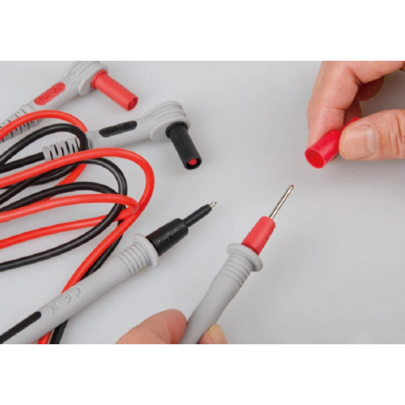 Мультиметр поддерживает измерение напряжений переменного и постоянного тока в пределах 0,1 мВ – 600 Вольт. Замеры разрешено выполнять для силы тока вплоть до 10 Ампер. Прибор комплектуется съемными щупами и оснащен предохранителем. Щупы с жесткими прорезиненными наконечниками обеспечивают дополнительную защиту при работе с электроприборами, подключенными к сети.