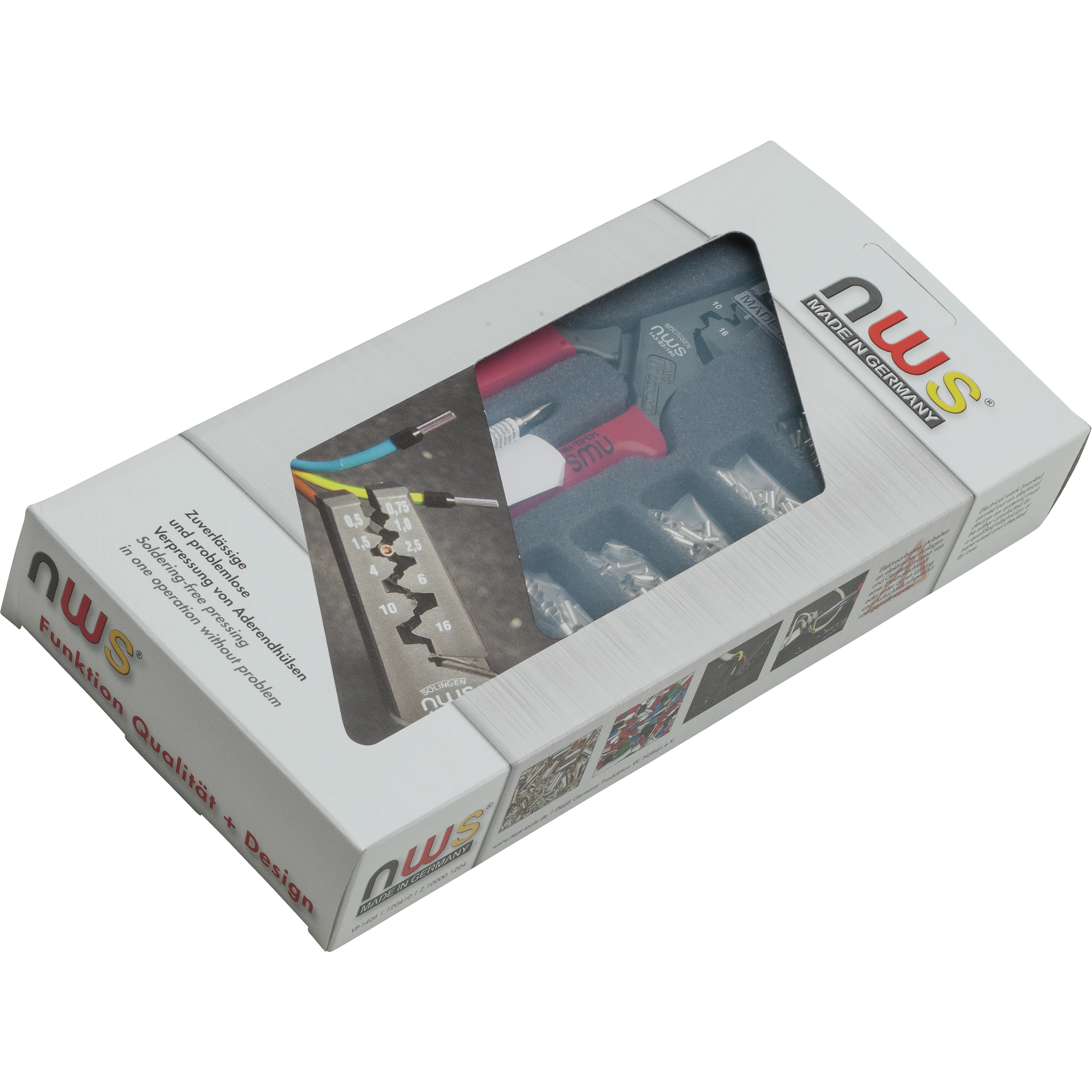 - Комплектуется клещами для опрессовки и примерно 300 неизолированными кабельными зажимами в ассортименте, от 0,5 до 16,0 мм²