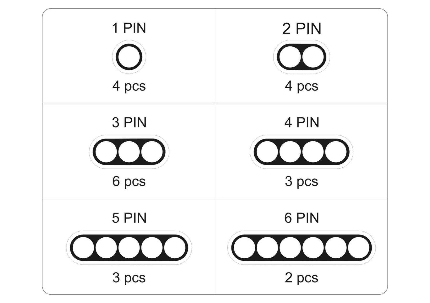 - Комплект містить 424 герметичних фітингів в 6 розмірах, які підходять для найбільш популярних діаметрів проводів