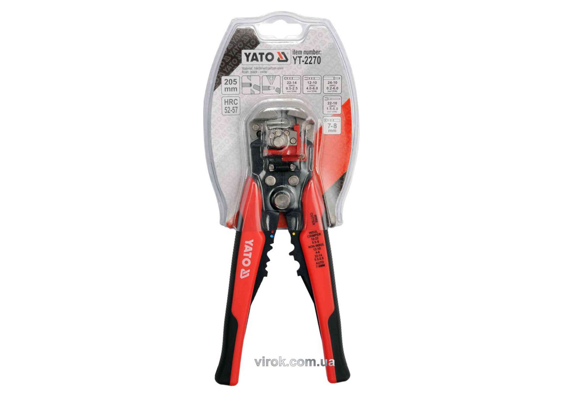 Кліщі YATO для обтискання і зачищення провідників, l= 205 мм [5/30]