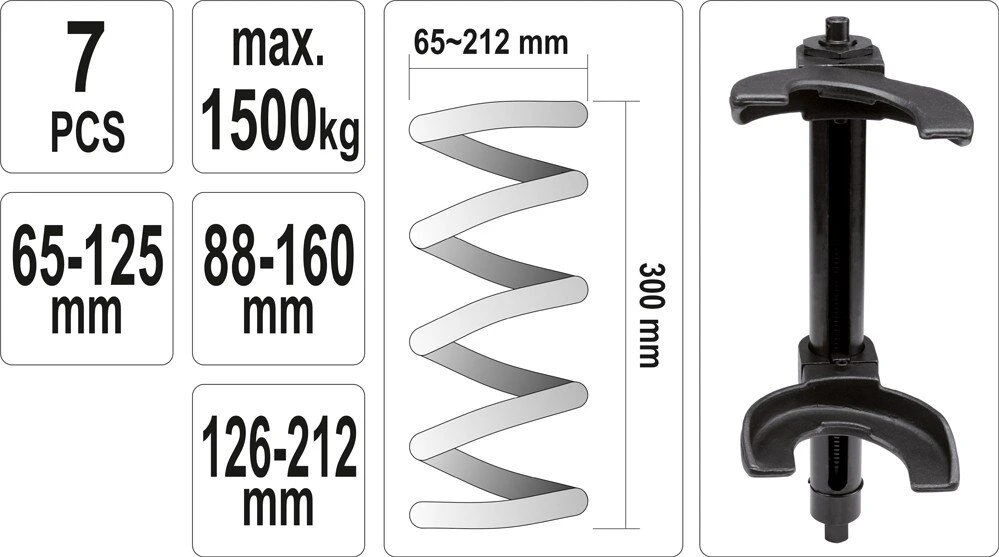 Съемник пружин универсальный YATO YT-2536 предназначен для сжатия пружин при ремонте элементов подвески автомобиля. Комплект состоит из 3 пар вилок различного размера с приспособлениями для фиксации и специального телескопического приспособления.