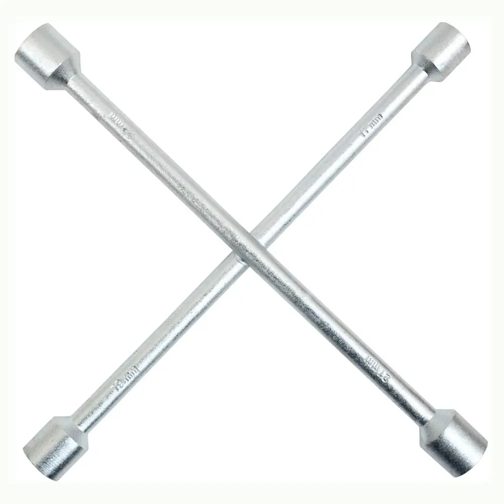 Виготовлений з міцної вуглецевої сталі. Хромоване покриття. Призначеній для робіт з болтовими різьбовими з'єднаннями. Хрестоподібний ключ складається з двох стрижнів круглого перетину, надійно скріплених між собою. Три сторони ключа оснащені стаціонарними головками зі стандартними розмірами колісних гайок, а четверта сторона оснащена вільним квадратом з розміром 1/2 '. Вільний квадрат розширює функціональні можливості ключа і дозволяє приєднувати торцеві головки різних розмірів для робіт з іншими різьбовими з'єднаннями. Серед типів балонних ключів хрестові є одним з найбільш поширених, так як він має міцну конструкцію, зручний для надійного захоплення руками, а також не шкодить кріплення, так як підтягує його по осі.