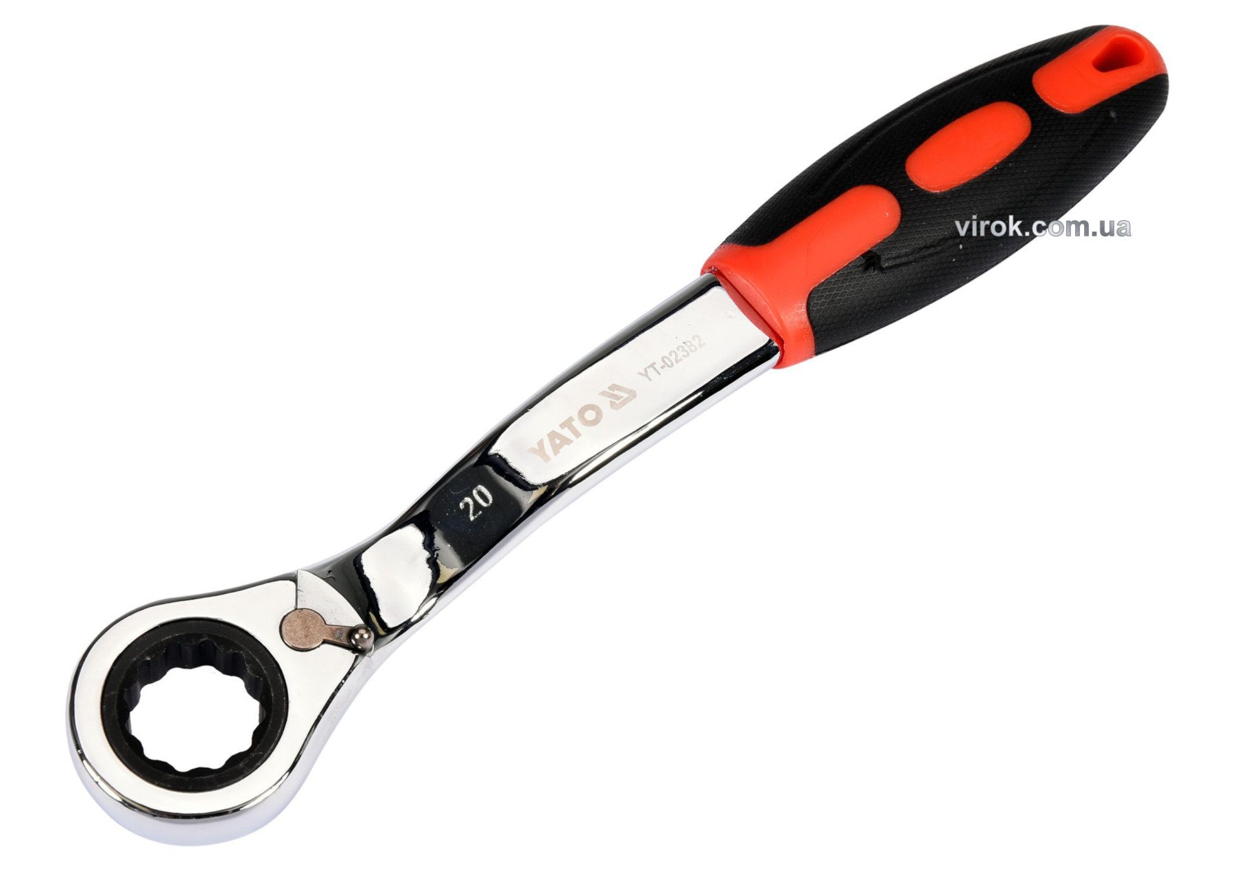 YATO Ключ накидний, вигнутий з тріщаткою: М20, HRC 42-48, Cr-V, з прогумованою ергономічною ручкою