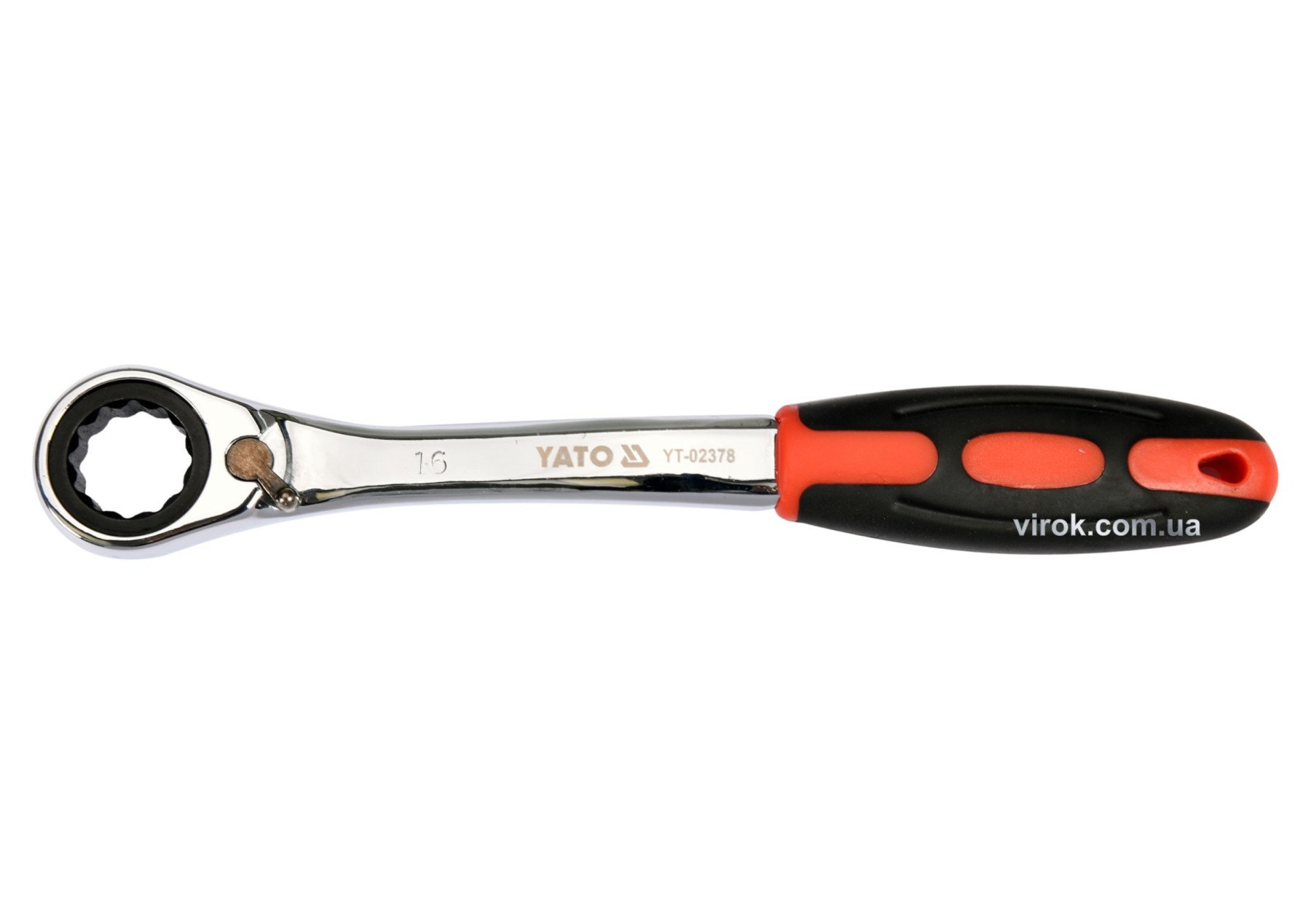 YATO Ключ накидний, вигнутий з тріщаткою: М16, HRC 42-48, Cr-V, з прогумованою ергономічною ручкою