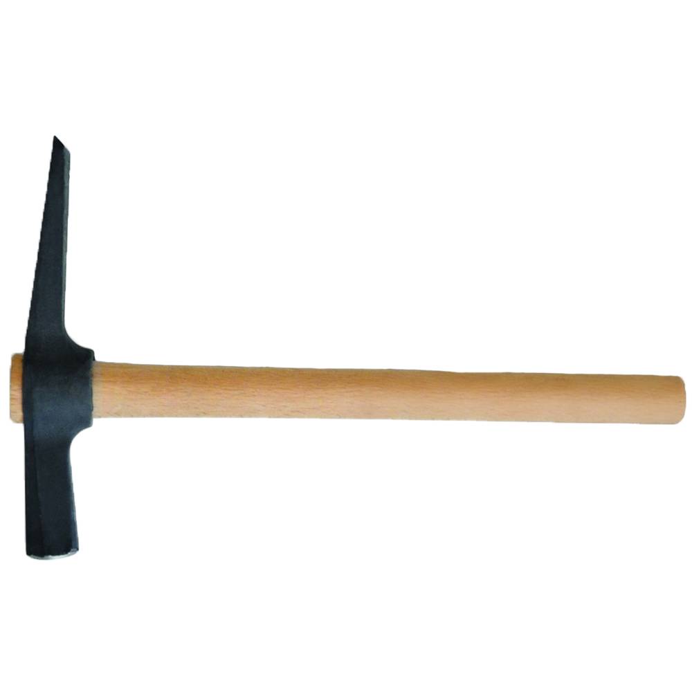 Молоток-кирка изготовлен из углеродистой стали С45. Голова покрыта черной нитроэмалью. Тип обработки поверхности бойка - шлифовка. Боек надежно фиксируется на ручке с помощью обратного конуса. С одного бока - боек прямоугольной формы, а с другого плоский нос. Деревянная ручка тщательно отполирована и покрыта прозрачным лаком, который защищает ее от рассыхания, появления трещин и загрязнения. Длина ручки (без учета головы) 270 мм. Молоток используется для забивки и извлечения гвоздей, ручного сгибания или ковки профильного металла, разлома кирпича. Применяется при выполнении строительных, штукатурных и других видов работ. Благодаря классической форме и традиционным материалам, удобная и надежная в работе.