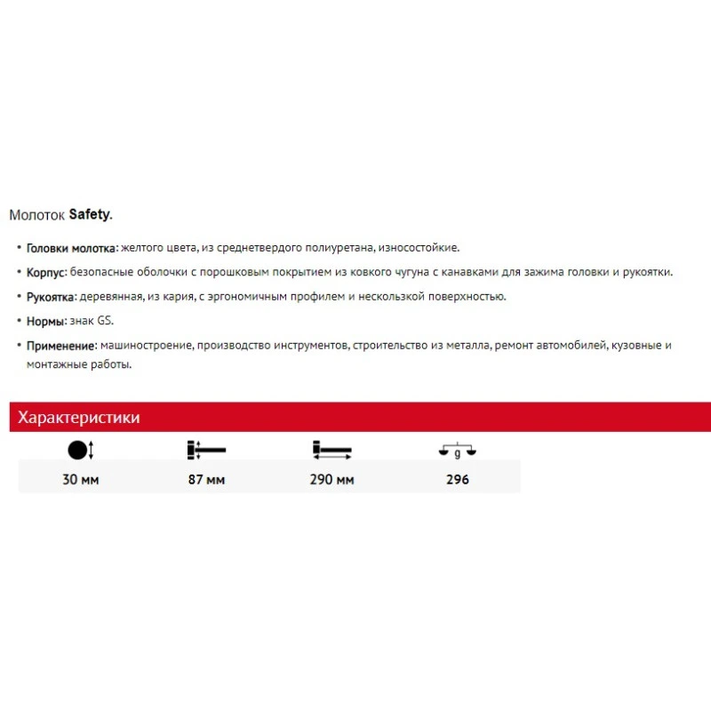 Молоток Safety, желтый 30x290 мм WIHA 26640