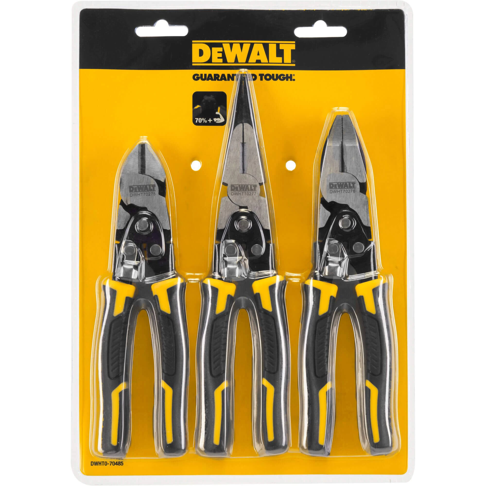Набір шарнірно - губцевих інструментів DeWALT "Compound Action", 3 предмети: комбіновані плоскогубці 210 мм, плоскогубці подовжені 230 і діагональні кусачки 190 мм.
