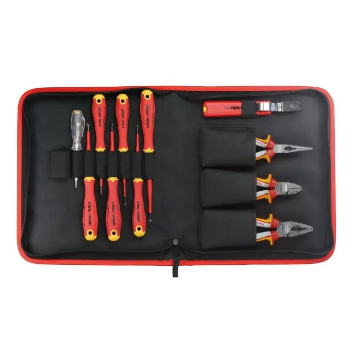Набір інструменту ERGONIC E-slim VDE 1000V, викрутки E-slim 3,5х100 мм/ 4,0х100 мм/ 5,5х125 мм/ РН1х80 мм/ РН2х100 мм/ PZ2x100 мм, плоскогубці комбіновані 180 мм, бокорізи 160 мм, плоскогубці подовжені 170 мм, знімач ізоляціі 8-28 мм, 5/16'-1,1/8' з кабел
