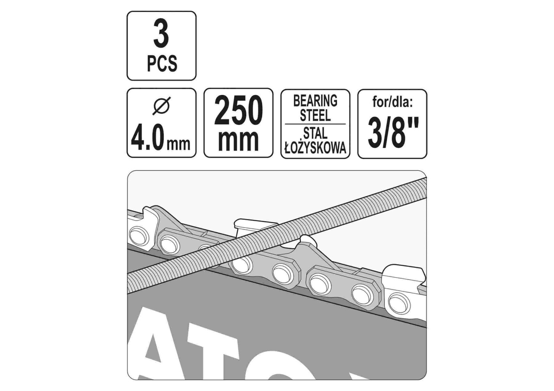 YATO Напильники для гостріння ланок ланцюгів YATO, Ø= 4 мм, l= 250 мм, 3 шт. | YT-85025