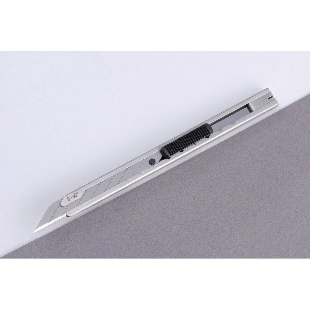 Ніж сегментний 9мм, графічний прецизійний ніж, корпус нержавіюча сталь, спеціальне лезо з гострим кутом Special Blades 30° автоматичний фіксатор