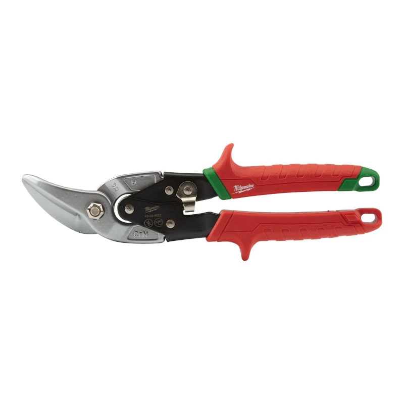 Ручний інструмент Ножиці 45градусів по металу Правий різ NEW Прорізи для великого та вказівного пальців для більшого комфорту при роботі та меншої втоми Зубчасті ріжучі кромки запобігають прослизу при різанні. Менше втома руки при різанні товстих матеріалів. Дизайн із комбінованою дією важеля. Торсійна пружина відкриває губки автоматично під час різання для більш швидкого різання та меншої втоми. Покриття хромом захищає від корозії для більшого терміну служби. Додаткове загартування до 65 HRC. Виготовлені з легованої сталі для кращої зносостійкості. Механізм блокування однією рукою. Тонкий, обтічний дизайн для запобігання зачепленню в матеріалі. Три напрямки різання маркуються на голові, ручках та у колірній схемі ручок. Ергономічні та міцні гумові рукоятки для більшого комфорту та тривалого терміну служби. Зміщені губки: для тривалого прямого або фігурного різання. Нахил губок 45 ° тримає користувача осторонь матеріалу. Комплект поставки: Ножиці для різання металу вигнуті Milwaukee правий різ - 1 шт. Постачається в блістері Вага (гр) 430 Довжина леза (мм) 30 Кількість (шт) 1 Макс. ріжуча здатність алюмінію (мм) 1.0 Макс. ріжуча здатність у нержавіючій сталі (мм) 0.6 Макс. ріжуча здатність у сталі (мм) 1.0 Напрямок різання правий різ (зелений) Загальна довжина (мм) 260
