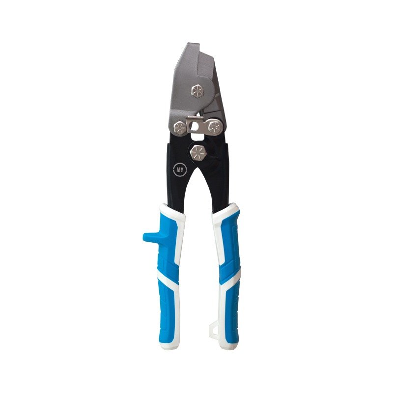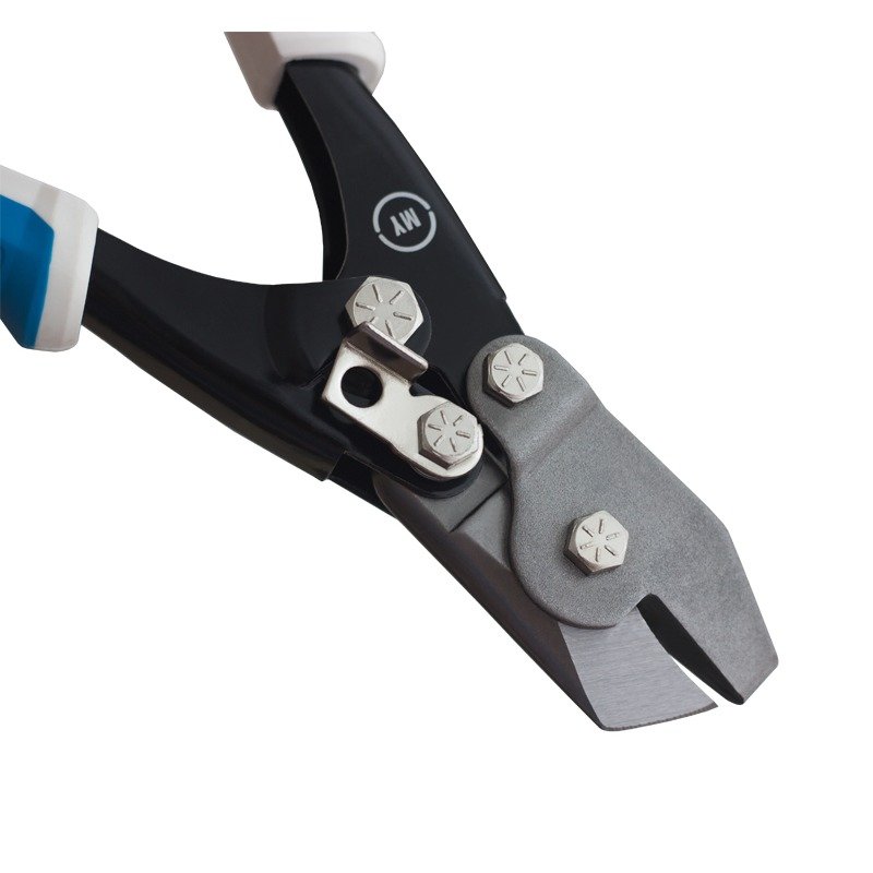 Ножиці по металу для V-вирізу, 20мм, 30°. Дозволяють одним рухом видаляти сегменти листового матеріалу, що дає можливість створювати каркаси потрібних радіусів та кутів, наприклад, при монтуванні об'єктів з гіпсокартону або виготовленні різноманітних бляшаних конструкцій. Ергономічні, зручні ручки мають покриття з TPR, матеріалу, який не ковзає та не втрачає свої якості під впливом сонячних променів та агресивних хімічних речовин.