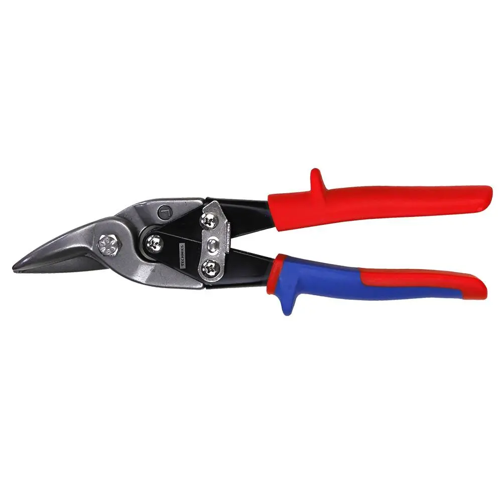 Ножницы по металлу изготовлены из высокопрочной стали Cr-V. Рабочие поверхности тщательно отполированы и имеют защитное антикоррозийное покрытие. Удобные эргономичные двухкомпонентные (пластик + резина) ручки предотвращают скольжение инструмента в руке и обеспечивают комфорт и снижение усталости руки во время работы. Ножницы длиной 250 мм и есть трех видов: 45-020 с левым резом, 45-021 с правым резом и 45-022 с прямым резом. Применяются для резки листового железа толщиной до 1,2 мм и нержавеющей стали до 0,7 мм. Благодаря классической форме и традиционным материалам, удобные и надежные в работе.