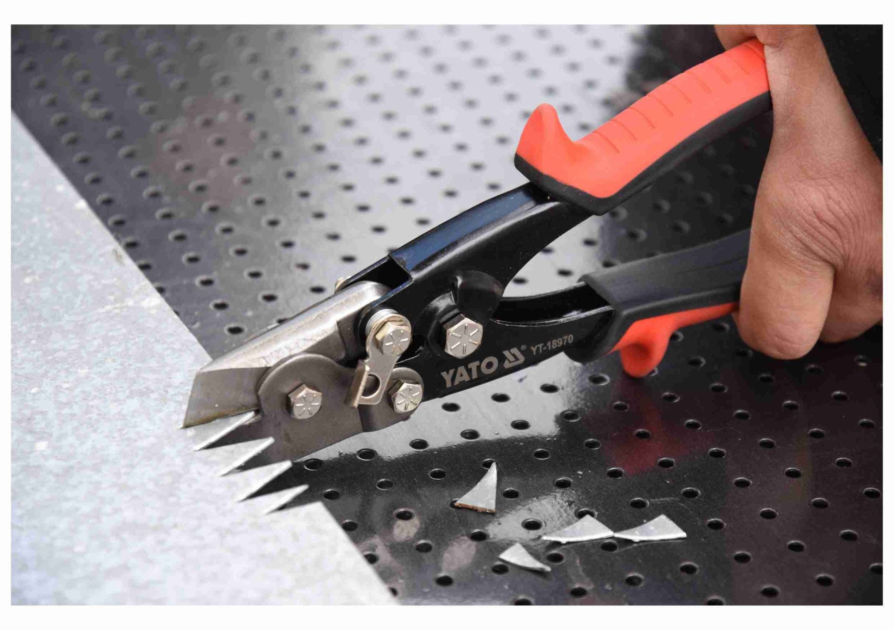 Висічні ножиці YATO YT-18970 призначені для виготовлення трикутних розрізів з кутом 30 градусів у металевих листах при монтажі водостічних жолобів або інших робіт з листовим металом.