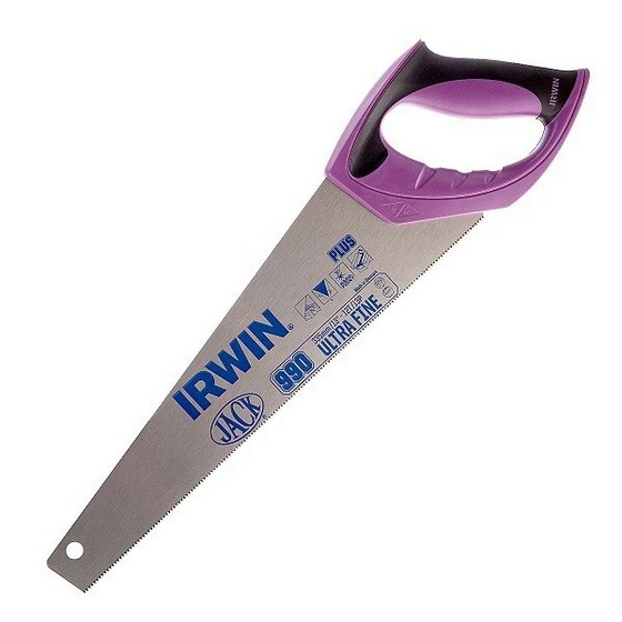 Ножівка з дерева 335мм 12T/13P надчистий різ, IRWIN Чудовий інструмент для використання по пластику, дерев'яному ламінату та ПВХ. Жорстке полотно товщиною 0,85 мм із високоякісної холоднокатаної сталі С75, для максимальної стабільності та передачі зусилля оператора. Зуби мають двогранну заточку та загартовані струмом високої частоти, що гарантує тривалий термін служби. Оптимізоване розведення зубів для швидкого старту, чистого та прямолінійного різу. Дуже дрібні зубці 12T/13P, що забезпечують чудову якість обробки матеріалу. Лезо інструменту покрите антикорозійним лаком на водній основі, що в 4 рази надійніше і довговічніше, ніж традиційне покриття. Дуже зручна ергономічна ручка із двох матеріалів, приварена ультразвуком для надійної фіксації. Також ручка має збільшене коло рукоятки (гарантує ідеальне відчуття контролю в процесі різання) та оптимізований простір для рук, що надає більше комфорту для роботи в рукавичках. Рукоятка має грані для побудови кутів 90 і 45 для зручності при розмітці. Асортимент ножівок IRWIN ® Jack® є найкращими у своєму класі ручними пилками для сучасних професіоналів. Передова технологія зубів та ергономічна рукоятка ProTouch™ роблять ручні пилки IRWIN найкращим вибором для швидкості, простоти та якості різання.
