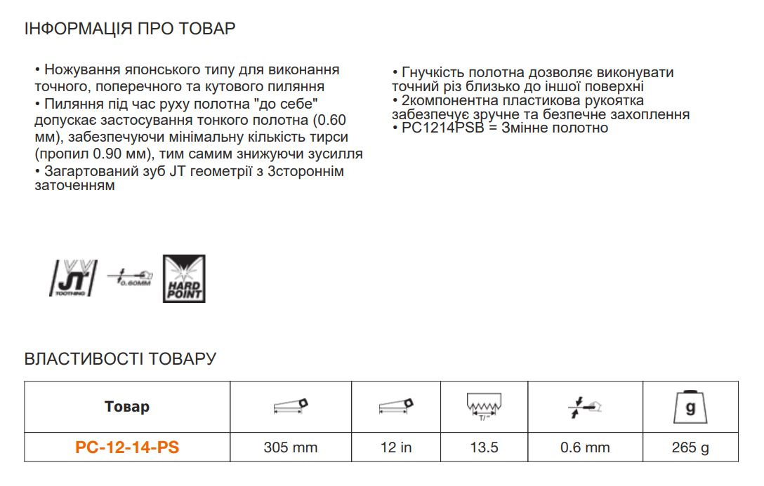 Ножівка японського типу BAHCO PC-12-14-PS, 305 мм (PC-12-14-PS)