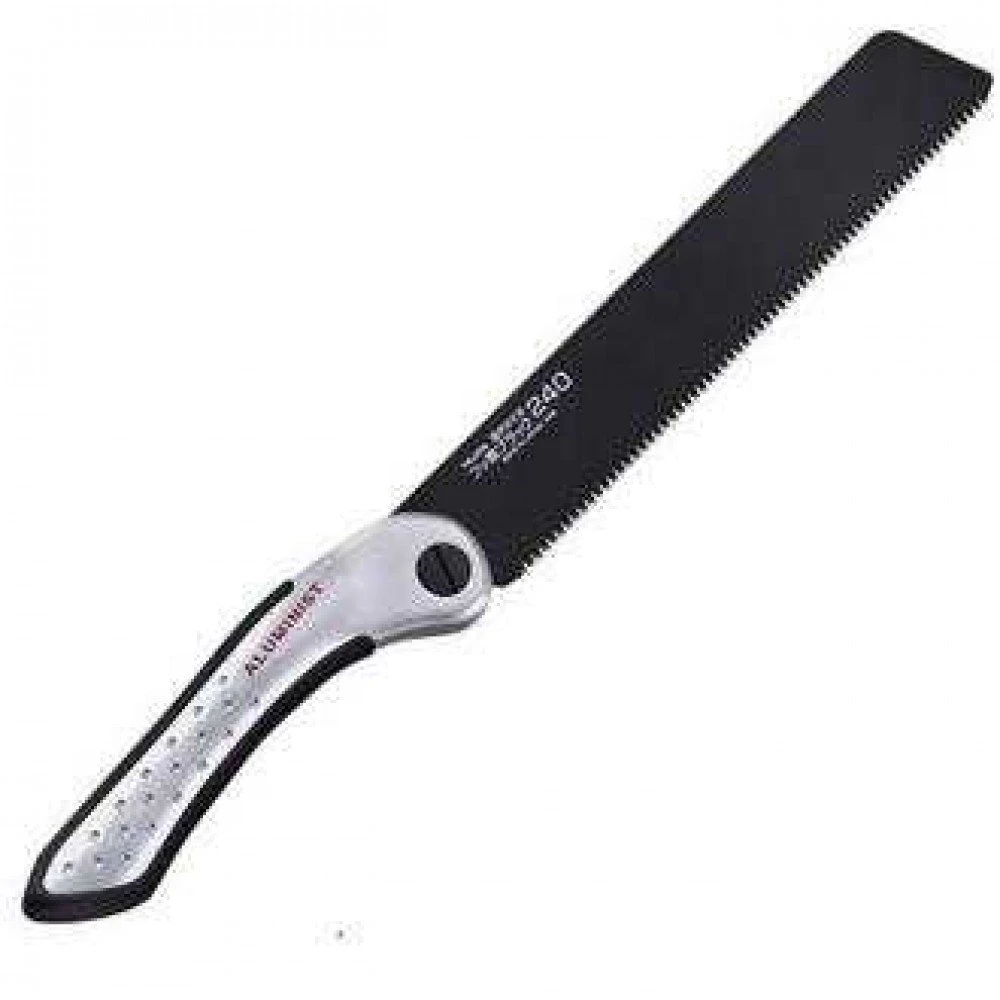 Ручная пила TAJIMA Aluminist GKAL-SS240Z9FB - высокоточный инструмент для тонких пропилов с прямоугольным полотном. Пила GKAL-SS240Z9FB представляет собой инструмент из самыми высокими показателями износостойкости, надежности, эргономики и производительности. Каждое полотно Tajima изготовлено из высококачественной японской стали SK-95, обработано с прецизионной точностью и многоэтапным уникальным закаливанием. Дополнительно полотна серии Aluminist защищены от коррозии специальным фторопластовым покрытием (надежнее тефлона), которое обеспечивает превосходное скольжение, особенно, в смолистой древесине. Благодаря такому покрытию стружка меньше прилипает и не засоряет межзубное пространство, обеспечивая повышенную продуктивность и меньшую утомляемость при работе. Фторопласт чрезвычайно устойчив к стиранию, обладает очень высоким показателем скольжения и отлично выдерживает экстремальные температурные условия. Пильные зубья имеют бритвенную остроту и закаленные токами высокой частоты, благодаря чему, они служат в разы дольше, сохраняя свою остроту, по сравнению с традиционными пилами. Также зубья имеют особую геометрию: угол наклона и заточку в трех плоскостях, поэтому резание древесины происходит при движении пилы на себя. При таком способе пиления полотно всегда пытается максимально выпрямиться, благодаря чему достигается безупречно точный и ровный пропил. Данная особенность существенно отличает японские пили с технологией Japan Pull от, привычных нам, европейских, в которых форма и направление зубьев предусматривает приложение силы толкая инструмент от себя. Благодаря всем выше перечисленным особенностям, пилы Tajima GKAL-SS240Z9FB обеспечивают значительно быстрое резание, менее утомительную работу, более ровный пропил и очень чистый срез. Алюминиевая Premium рукоятка с резиновыми накладками обеспечивает комфорт в работе и увеличивает долговечность инструмента. Полотно надежно и жестко зафиксировано в рукоятке, но его всегда можно с легкостью заменить - к каждой пиле Tajima можно приобрести сменное полотно, а также использовать различные полотна с одной рукояткой.