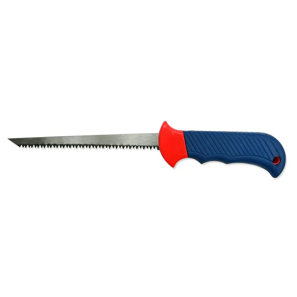 Пила по гипсокартону. Полотно изготовлено из стали. Зубья разведены и закалены, имеют 2-х гранную заточку, что позволяет пилить в двух направлениях. Шаг зуба - 7 шт. / 1 дюйм. Двухкомпонентная (пластик + резина) эргономичной ручка открытой формы, не скользит в руке. Предназначена для распила заготовок из гипсокартона, дерева и пластмассы. Идеально подходит для выпиливания кругов, обеспечивает высокую точность прямого реза.