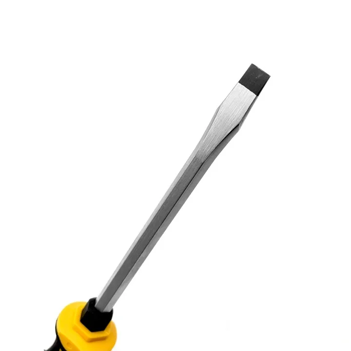 Викрутка ударна плоска шліцьова Ergonic SL 8,0 призначена для проведення монтажно-демонтажних робіт з кріпленням типу SL 8,0. Удароміцний стрижень проходить по всій довжині викрутки та виготовлений із загартованої високоякісної інструментальної сталі (CrMoV), загартованої додатково в маслі, зносостійкість та міцність якої перевищує технічні вимоги європейських стандартів DIN та ISO. На стрижні є приварена шестигранна гайка для надання додаткового зусилля на кріплення при відкручуванні/закручуванні гвинтів.
