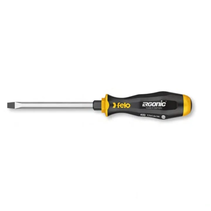 Викрутка силова ударна ERGONІС шліц 10,0х1,6х180 мм, DIN 5264, ISO 2380, високолегована CrV сталь, захват під ключ, стрижень на усю довжину викрутки, чорний наконечник для точної посадки, трикомпонентна ручка 112 мм, виконана з ударостійкого пластику з м`