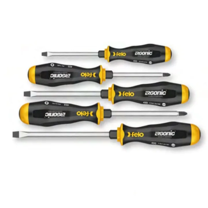 Набір викруток силових ударних ERGONIC 5 шт, щліц 4,5x0,8х90х94 мм/ 5,5x1,0х100х94 мм/ 7,0x1,2х130х101 мм/ PZ1x80х94 мм/ PZ2x100х101 мм, DIN 5264, ISO 2380, спеціальна CrМоV сталь, захват під ключ, стрижень на усю довжину викрутки, чорний наконечник для т