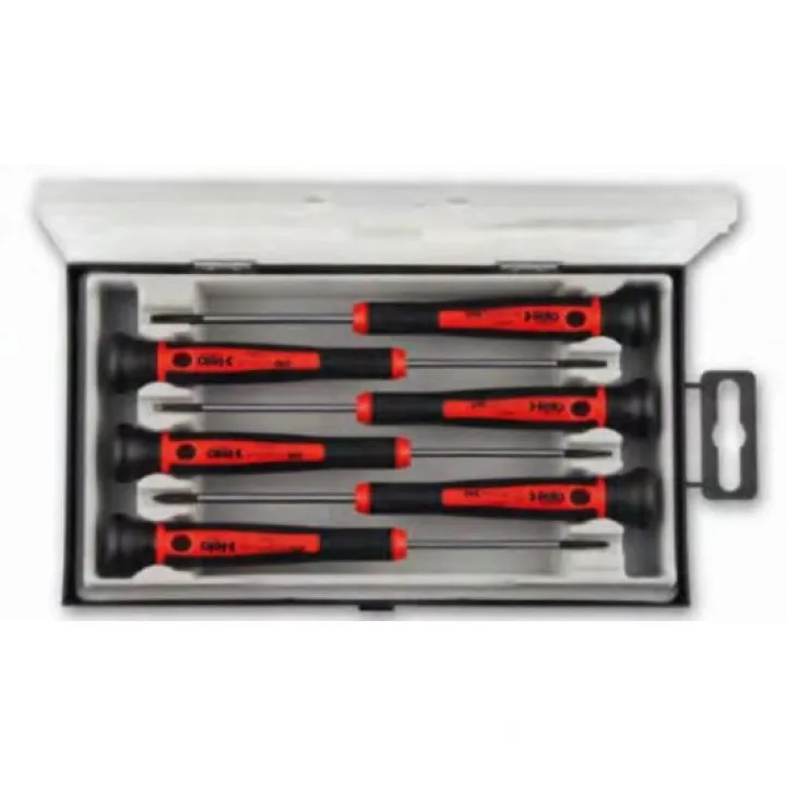 Набір викруток для точних робіт 2,0х0,4х60 мм/ PH000x60 мм/ P2x60мм/ P5x60мм/ P6x60мм/ Y0x60 мм, DIN ISO 2380, спеціальна CrMoV сталь, 2-х компонентна ергономічна ручка з отвором, високий крутний момент, чорний прецизійний кінцевик, ковпачок що вільно обе