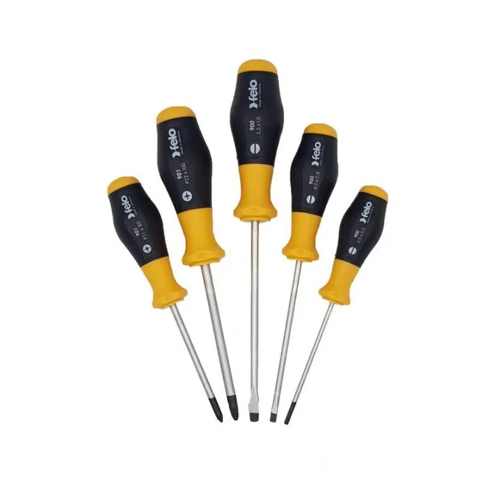 Набір викруток слюсарних шліц 3,0х0,5х80х80 мм/ 4,0х0,8х100х90 мм/ 5,5х1,0х125х100 мм/ PZ1x80х90 мм/ PZ2x100х100 мм, DIN ISO 8764, спеціальна CrМоV сталь, чорний наконечник для точної посадки, двокомпонентна ергономічна ручка виконана з ударостійкого плас