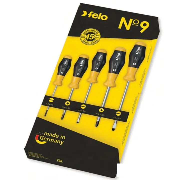 Набір викруток слюсарних шліц 3,0х0,5х80х80 мм/ 4,0х0,8х100х90 мм/ 5,5х1,0х125х100 мм/ PH1x80х90 мм/ PH2x100х100 мм, DIN ISO 8764, спеціальна CrМоV сталь, чорний наконечник для точної посадки, двокомпонентна ергономічна ручка виконана з ударостійкого плас