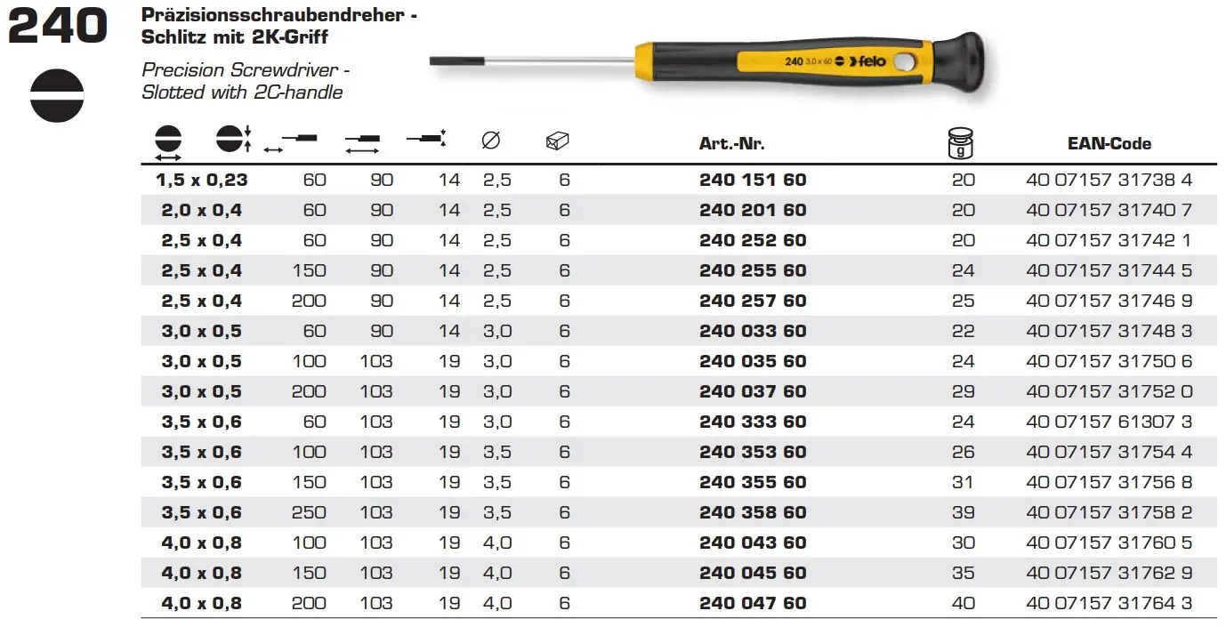 Викрутка для точних робіт FELO SL 2,5х0,4х60х90 мм (24025260)