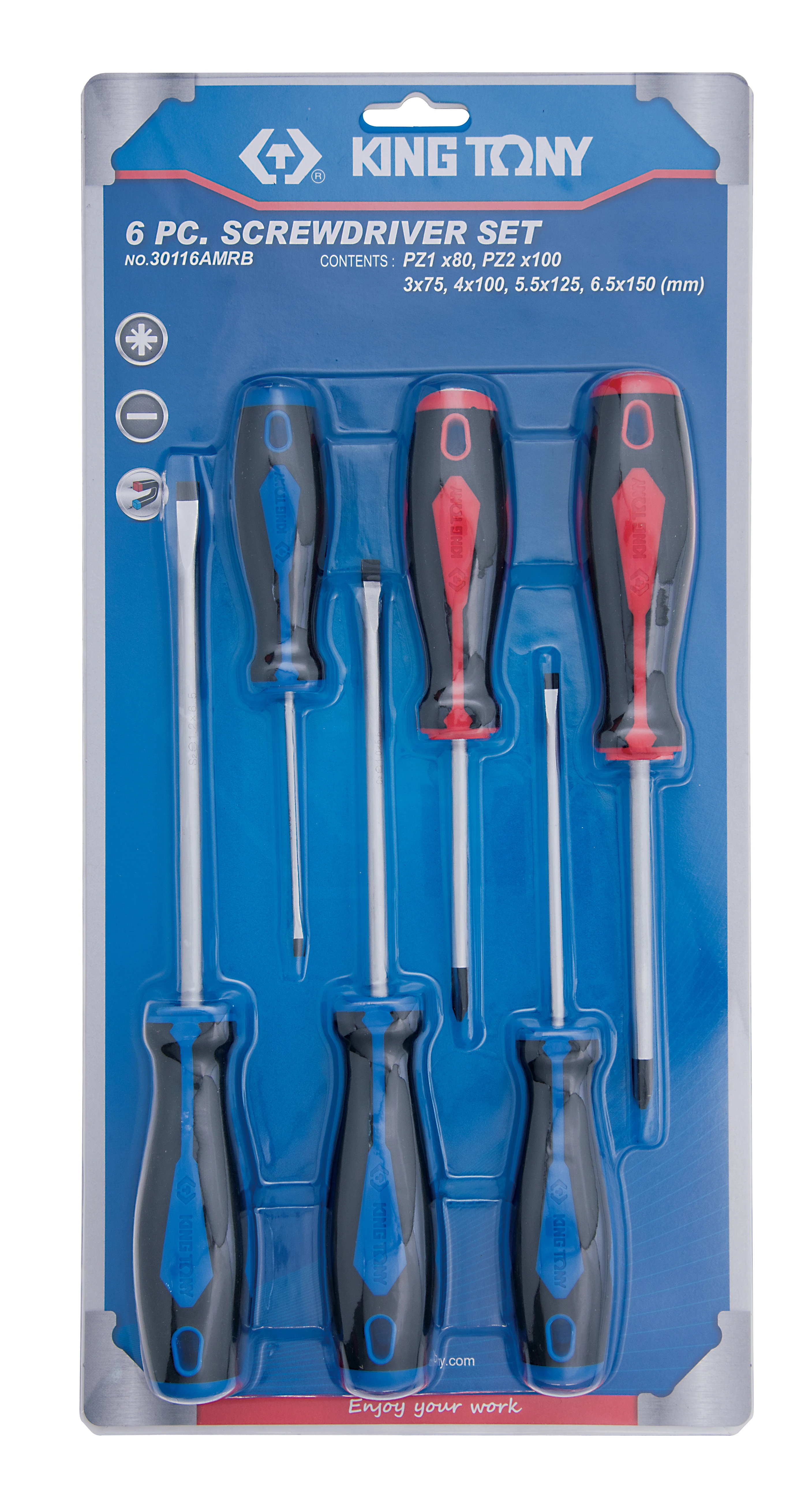 Набір викруток Накінечник: плоский (SLOTTED), хрест (PHILLIPS) Довжина стрижня викрутки: 75, 80, 100, 125, 150 мм Кількість викруток у наборі: 6 шт