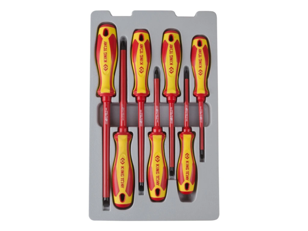 Викрутки діелектричні (набір 7 ін.) Викрутка PZ 1478 (No.1 x 100, No.2 x 100, No.3 x 150) Викрутка шліцева 1472 (4 x 100, 5.5 x 125, 6.5 x 150, 8.0 x 175)