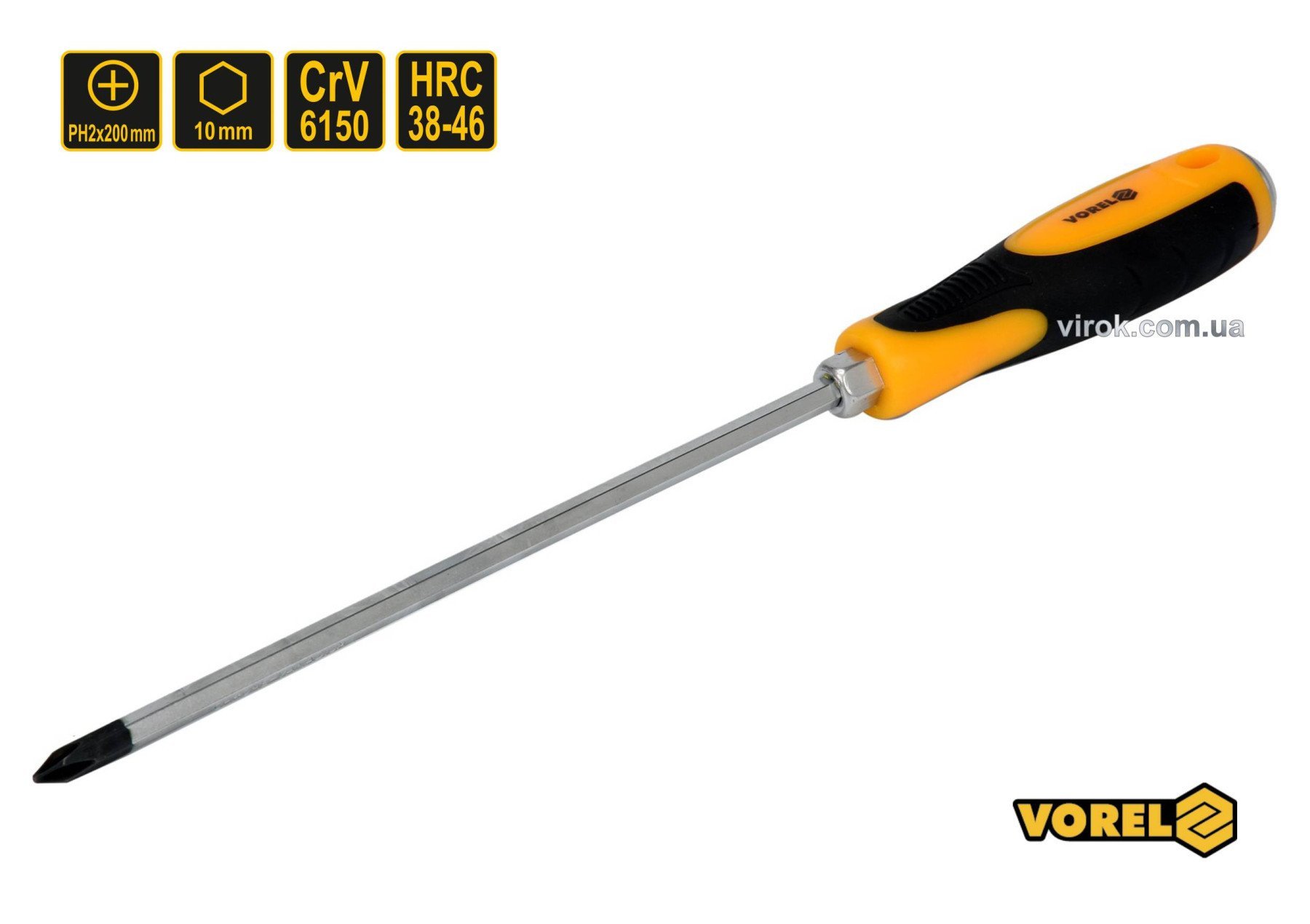 VOREL Викрутка хрестова ударна з 6-гранним стержнем : PH2 х 200 мм, HRC 38-46, Cr-V | 62174