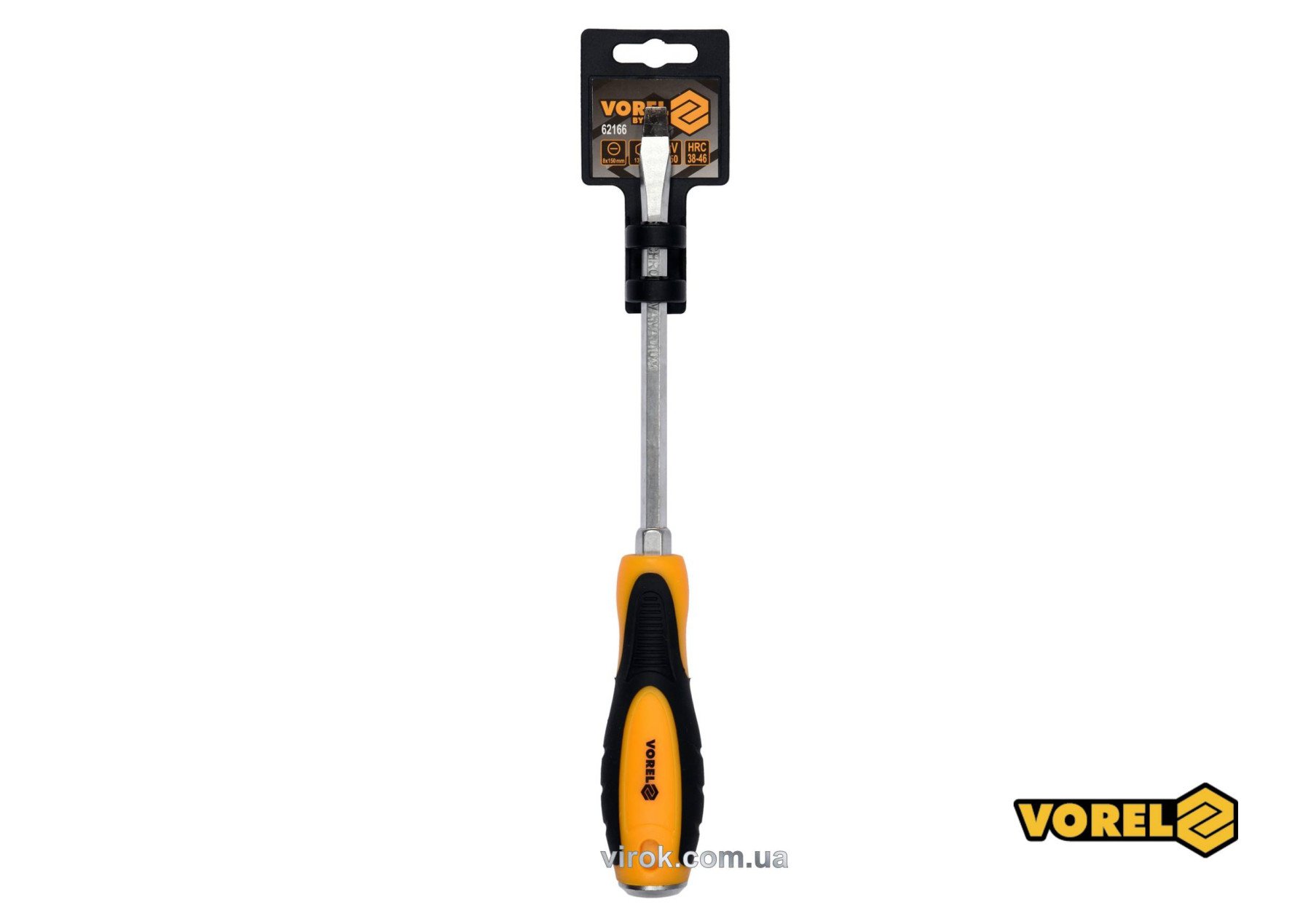 VOREL Викрутка плоска ударна з 6-гранним стержнем : SL8 х 150 мм, HRC 38-46, Cr-V | 62166