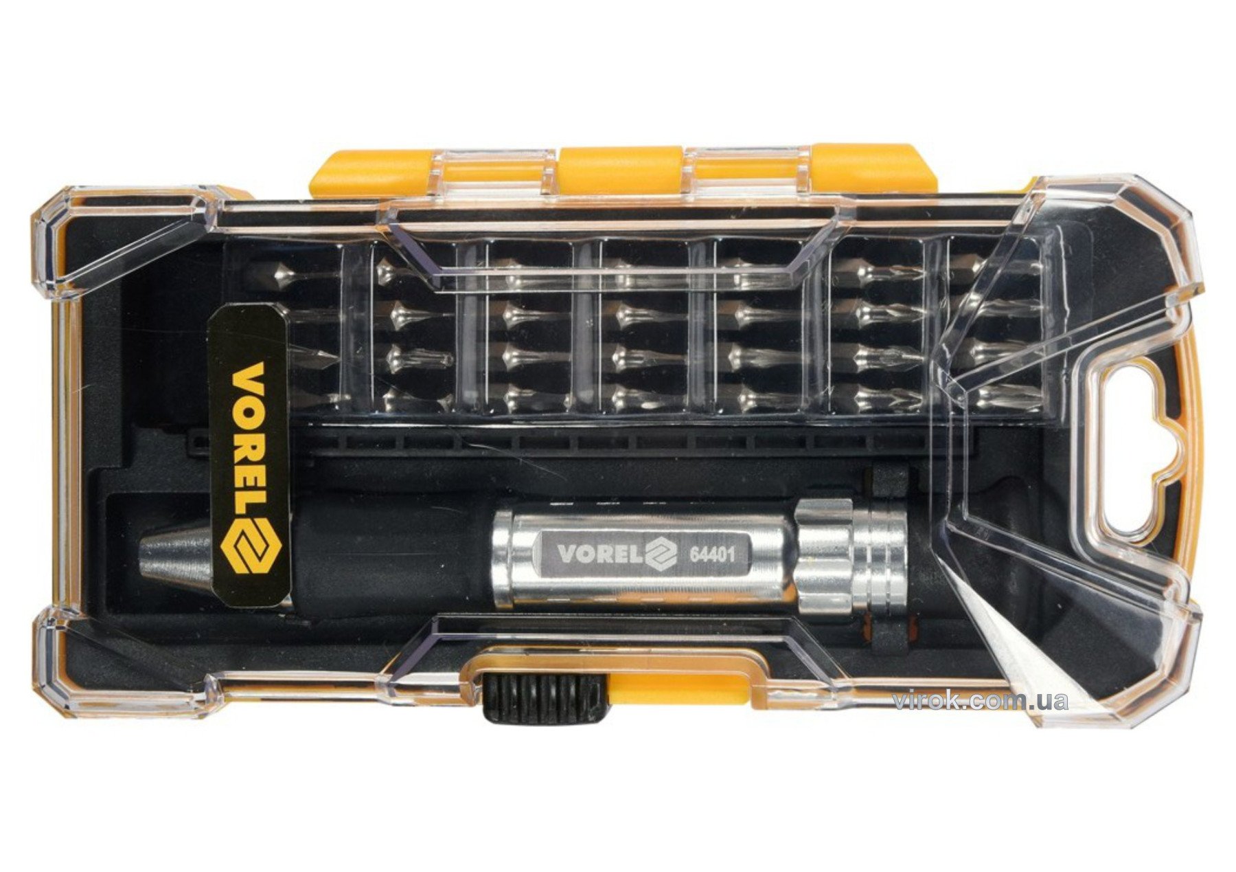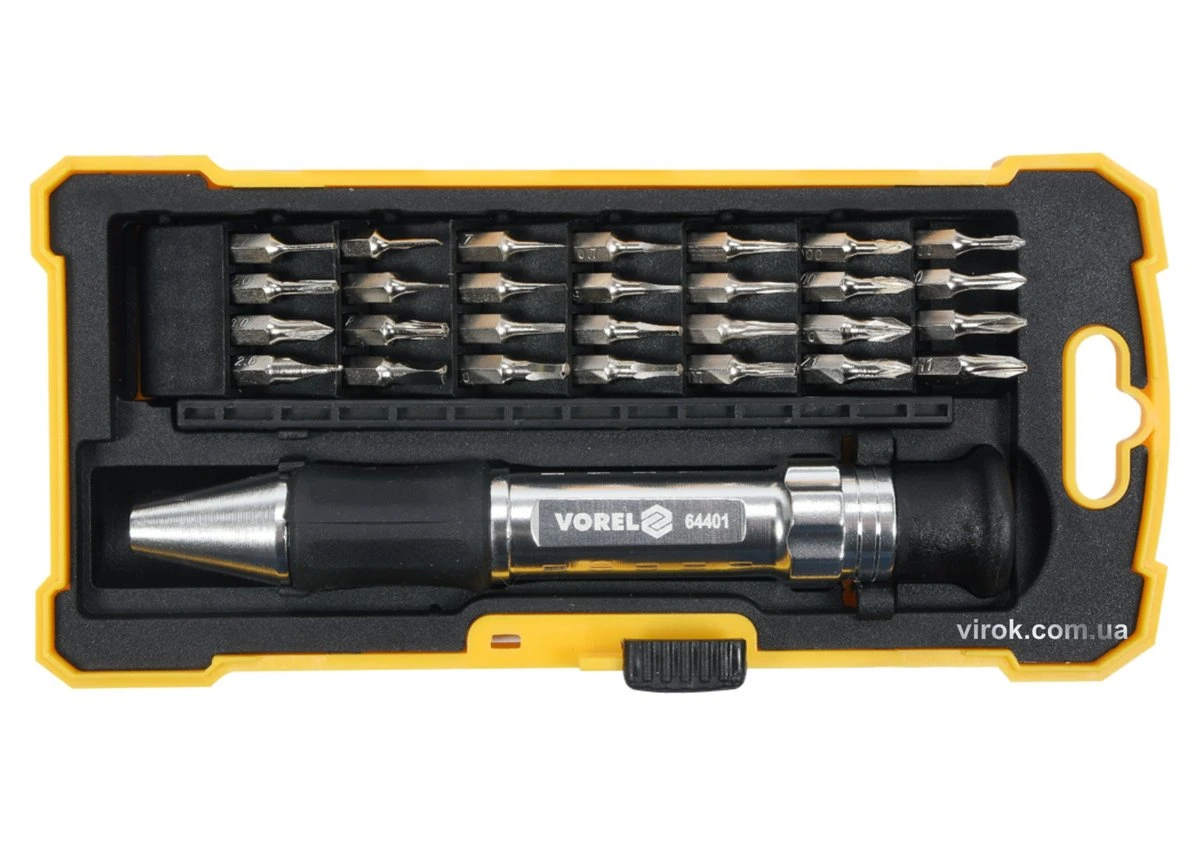 VOREL Викрутка зі змінними прецизійними викрутковими насадками в футлярі, 29 елем. | 64401