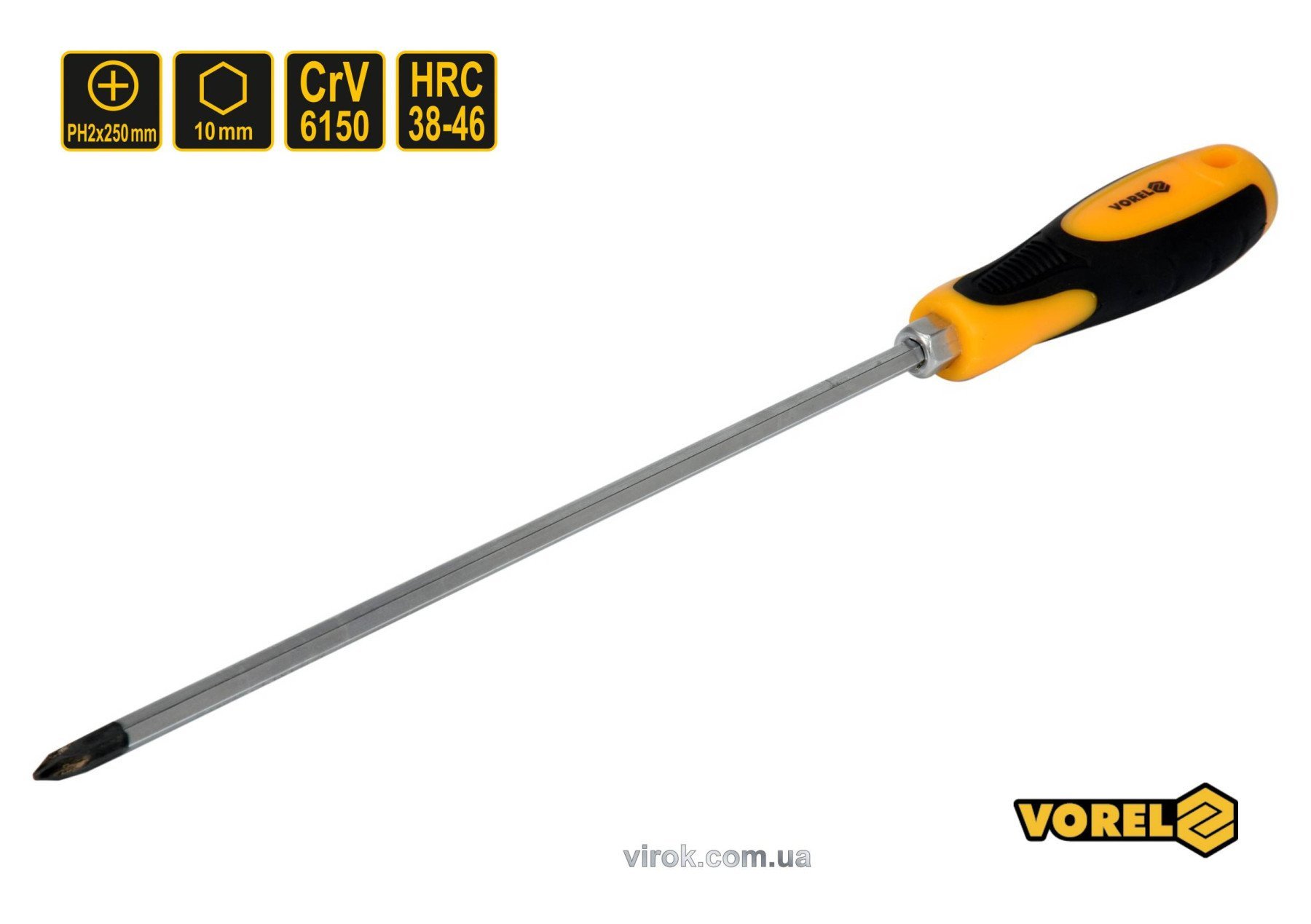 VOREL Викрутка хрестова ударна з 6-гранним стержнем : PH2 х 250 мм, HRC 38-46, Cr-V | 62175