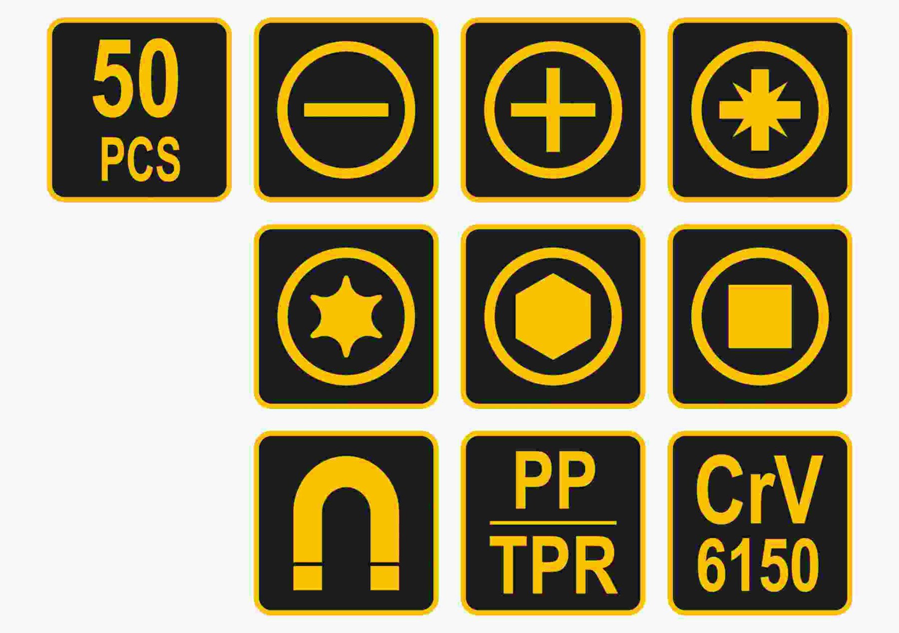 VOREL Набір викруток і викруткових насадок : Cr-V, 50 шт | 60780