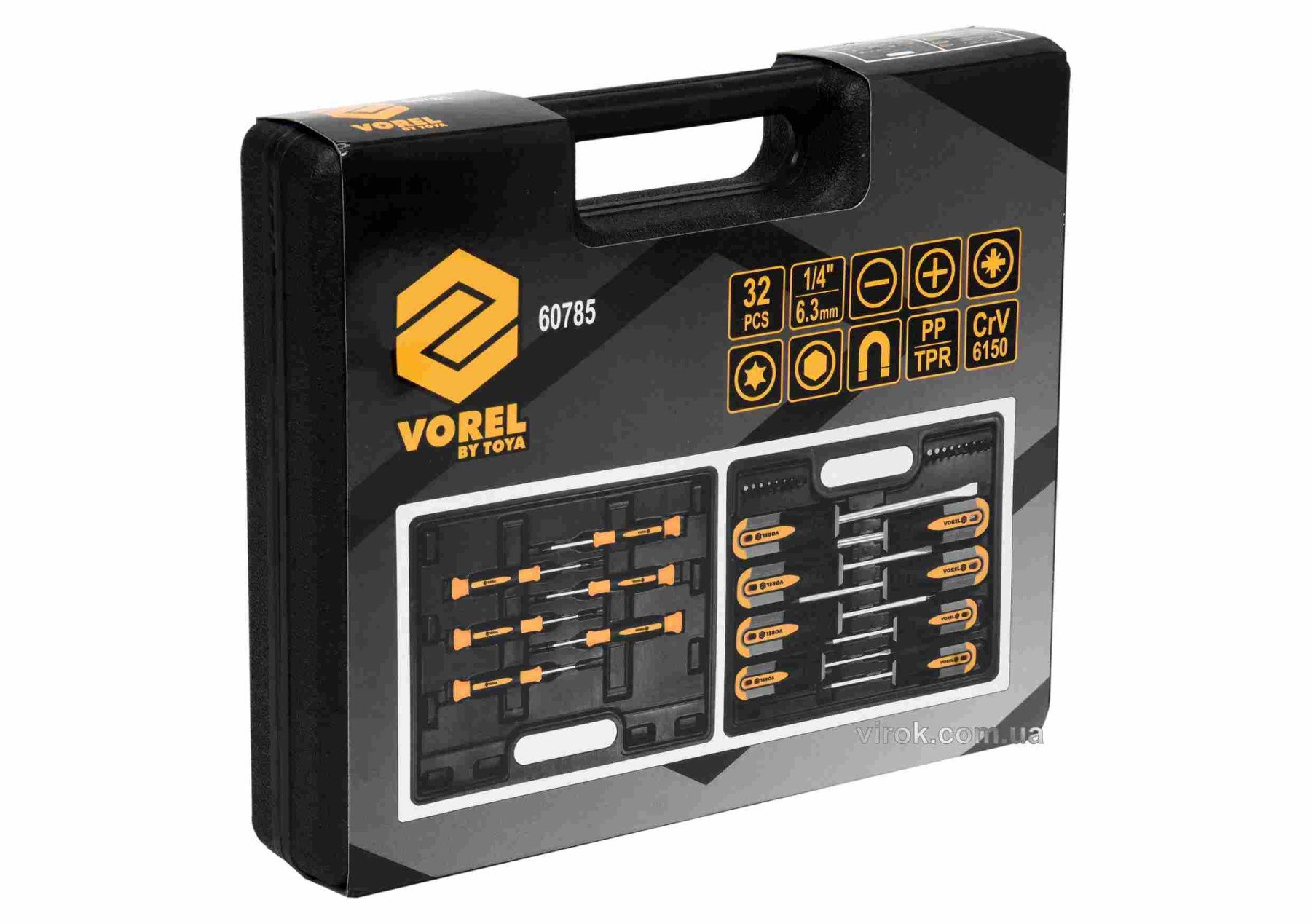 VOREL Набір викруток і викруткових насадок : Cr-V, 32 шт у футлярі | 60785