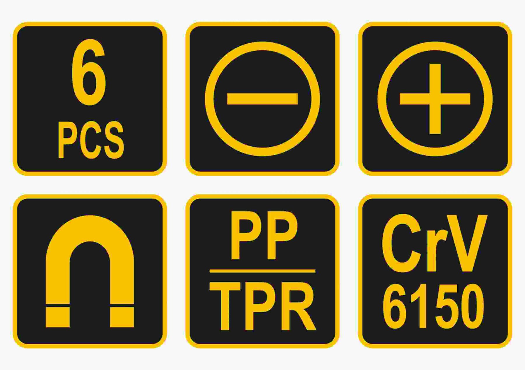 VOREL Набір викруток : SL6.5x38/5.5 x75/6.5 x100 мм, PH2 x 38/PH1x75/PH2 x100 мм, Cr-V, 6шт | 60783