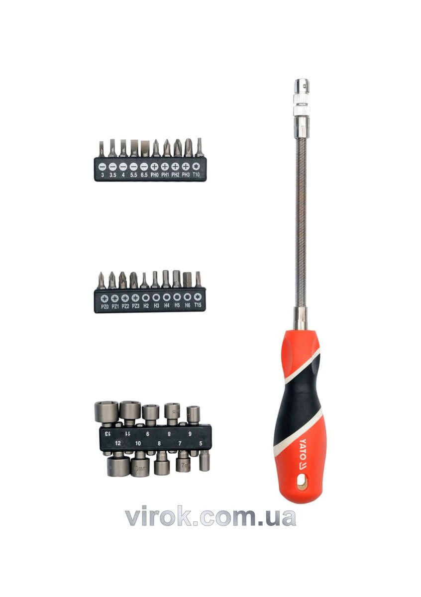 YATO Викрутка - тримач з гнучким стержнем з насадками, HEX 1/4". Hабір 31 Од. [6/24]