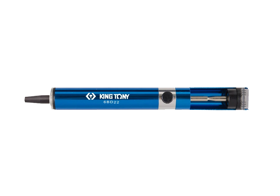 Видалення надлишків припою, паяльні роботи, монтаж електричних схем та приладів. Галузь застосування Станції технічного обслуговування (СТО), автосервіси, автомайстерні, виробництво, побутове застосування. Матеріали: алюміній (корпус), фторопласт-4 (тефлон) (сопло), сталь, пластик Габарити упаковки: 195 х 25 х 25 мм Упаковка: коробка картон Вага: 0,085 кг