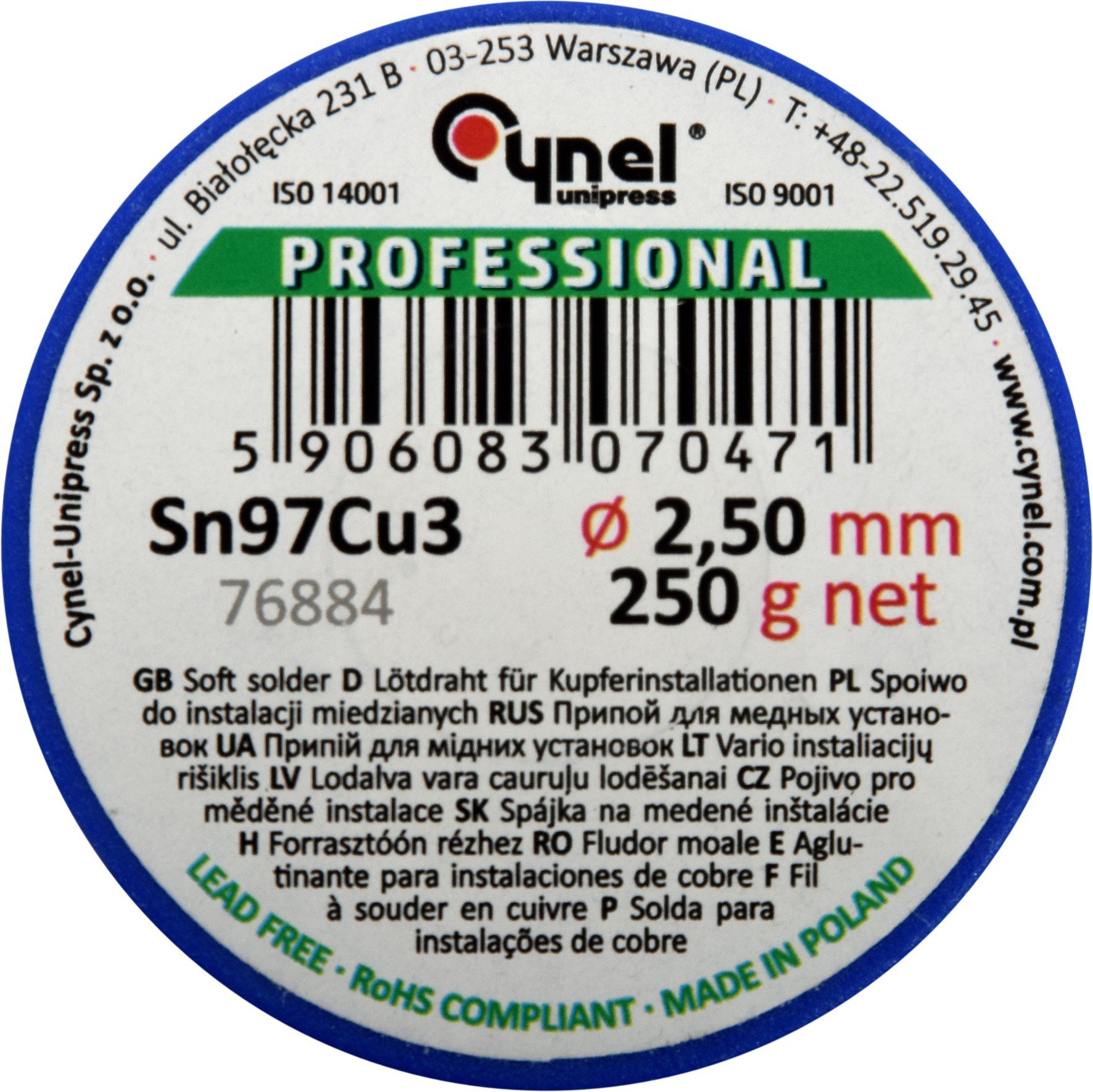 Припій для паяння міді CYNEL, Ø 2.5 мм, дротяний на котушці 250 г.