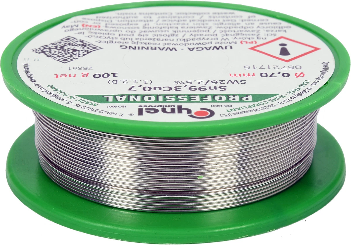 VOREL Припій без свинцю CYNEL : Ø0,7 мм, Sn99,3-Cu0,7 дротяний на котушці з флюсом m= 100 г | 76851