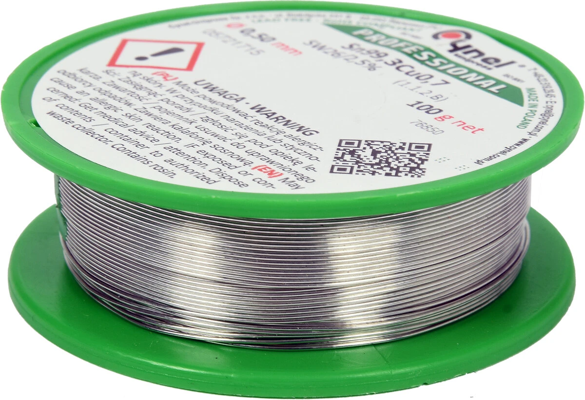 VOREL Припій без свинцю CYNEL : Ø0,5 мм, Sn99,3-Cu0,7 дротяний на котушці з флюсом m= 100 г | 76850