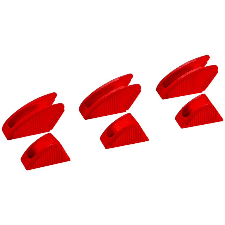 86 09 180 V01 Захисні губки Ідеальний вибір для дизайнерської фурнітури та інших високочутливих матеріалів завдяки м'яким, гладким захватним поверхням. Допускається використання на хромованих поверхнях, якщо губки кліщів були пошкоджені внаслідок неналежного використання. Можна легко та надійно зафіксувати на захватних губках за допомогою внутрішнього гака. Набір, що складається з 3 пар захисних губок із пластику (як на ілюстраціях). 3 пари пластикових губок для всіх моделей 86 XX 180 мм (моделі 2019).