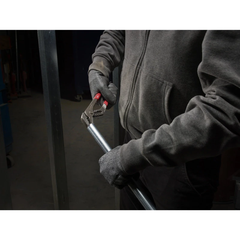 Ручний інструмент Плоскогубці переставні 250мм NEW Для затискання, закріплення та утримання заготовок Регулювання однією рукою за допомогою кнопки, що забезпечує швидкий та надійний затискач Точне регулювання положення для точності затиску Кнопка автоматичного блокування для швидкого та точного регулювання V-подібний затискач з профілем для міцнішого захоплення, більш точного припасування та зниження ковзання. Особливе загартування зубів до твердості 60 HRC Виготовлені із штампованої легованої сталі з додаванням нікелю та хрому для кращої зносостійкості та відмінного захисту від іржі. Ергономічна та довговічна гумова рукоятка для більшого комфорту та терміну служби Дизайн головки та рукоятки для зняття задирок. Немає необхідності у додаткових інструментах Доступно 3 варіанти довжини для досягнення оптимального важеля Ергономічний тонкий дизайн для роботи в важкодоступних місцях. Комплект поставки: Ключ для водопровідних труб Milwaukee Hex-Jaw 250 мм - 1 шт. Постачається в блістері Вага (гр) 425 Макс. діаметр труби (мм) 42 Загальна довжина (мм) 250