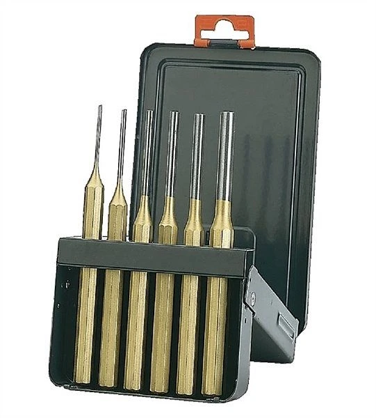 Набір пробійників 2/3/4/5/6/8 мм, довжина 150 мм, полірована CrV сталь, ударостійкий.
