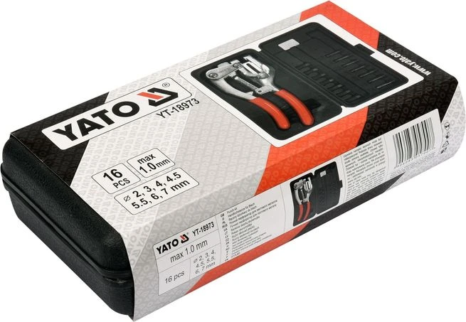 Кованые клещи с набором из 14 насадок для прокалывания отверстий листов толщиной до 1 мм. Их можно использовать для перфорирования пластмасс или картона. В комплект входят сменные закаленные насадки диаметром: 2, 3, 4, 4,5, 5,5, 6, 7 мм. Регулировка расстояния отверстий от края материала в диапазоне от 6,35 до 38 мм. Набор упакован в прочный пластиковый кейс, который состоит из 16 элементов.