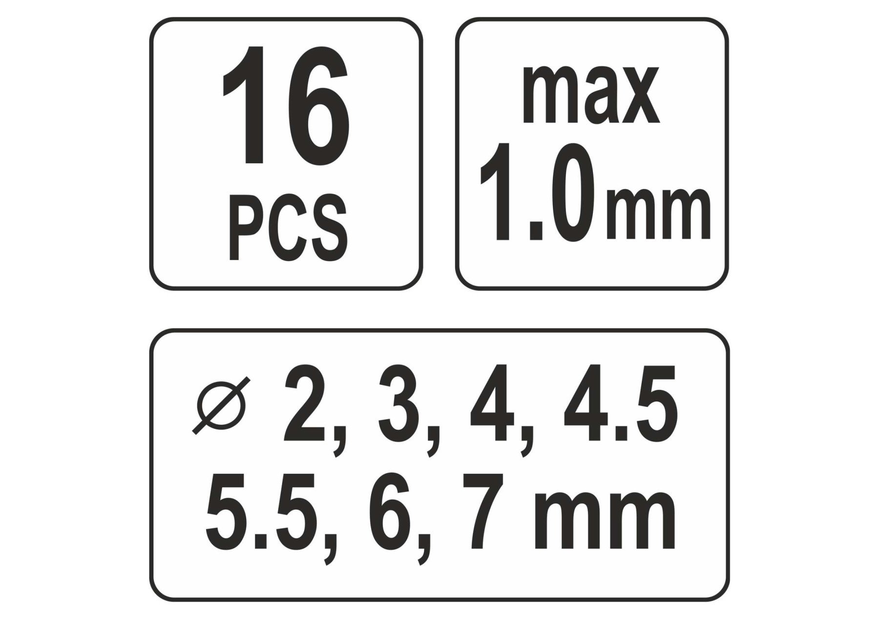 YATO Кліщі для проколювання отворів в листов. металі ≤ 1 мм, 14 насадок Ø= 2-7 мм, 16 шт + кейс