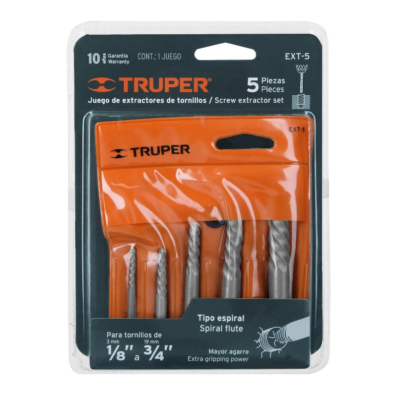 Набір із 5 гвинтових екстракторів для вилучення зламаних або вибитих болтів діаметром від 1/8" до 3/4".